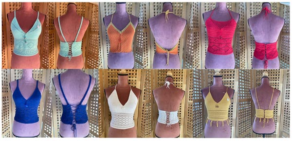 Ses deux activités, bien que différentes, ont pour point commun la possibilité d’effectuer différents mélanges de couleurs et de concevoir ainsi: des laines uniques et en quantités limitées et des lampes en pièces uniques puisqu’elle crée elle-même les designs et que le verre utilisé est acheté en petites quantités, il est donc impossible d’en reproduire une à l’identique.
