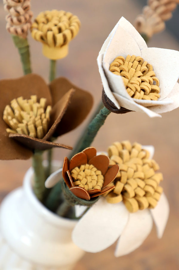 Je travaille principalement des cuirs gras ou au tannage végétal, que je me procure notamment à Javerlhac, en Dordogne. J’essaie de privilégier le tannage végétal, un procédé ancestral utilisant des extraits de plantes et d’écorces, plus respectueux de l’environnement que le tannage au chrome. Ces cuirs offrent des teintes naturelles et se patinent avec le temps, donnant à chaque pièce une histoire unique.