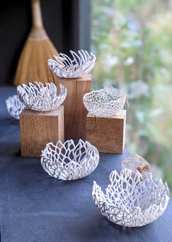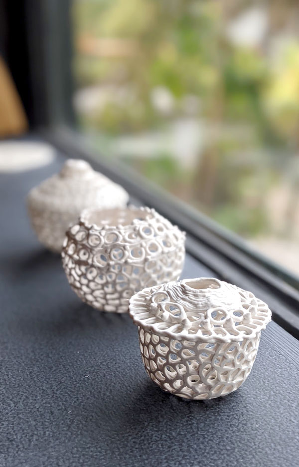 Trained as an interior architect and always sensitive to the emotion conveyed by a place or an object, for the past 20 years I have taken great pleasure in bringing lightness and poetry into my work through porcelain.